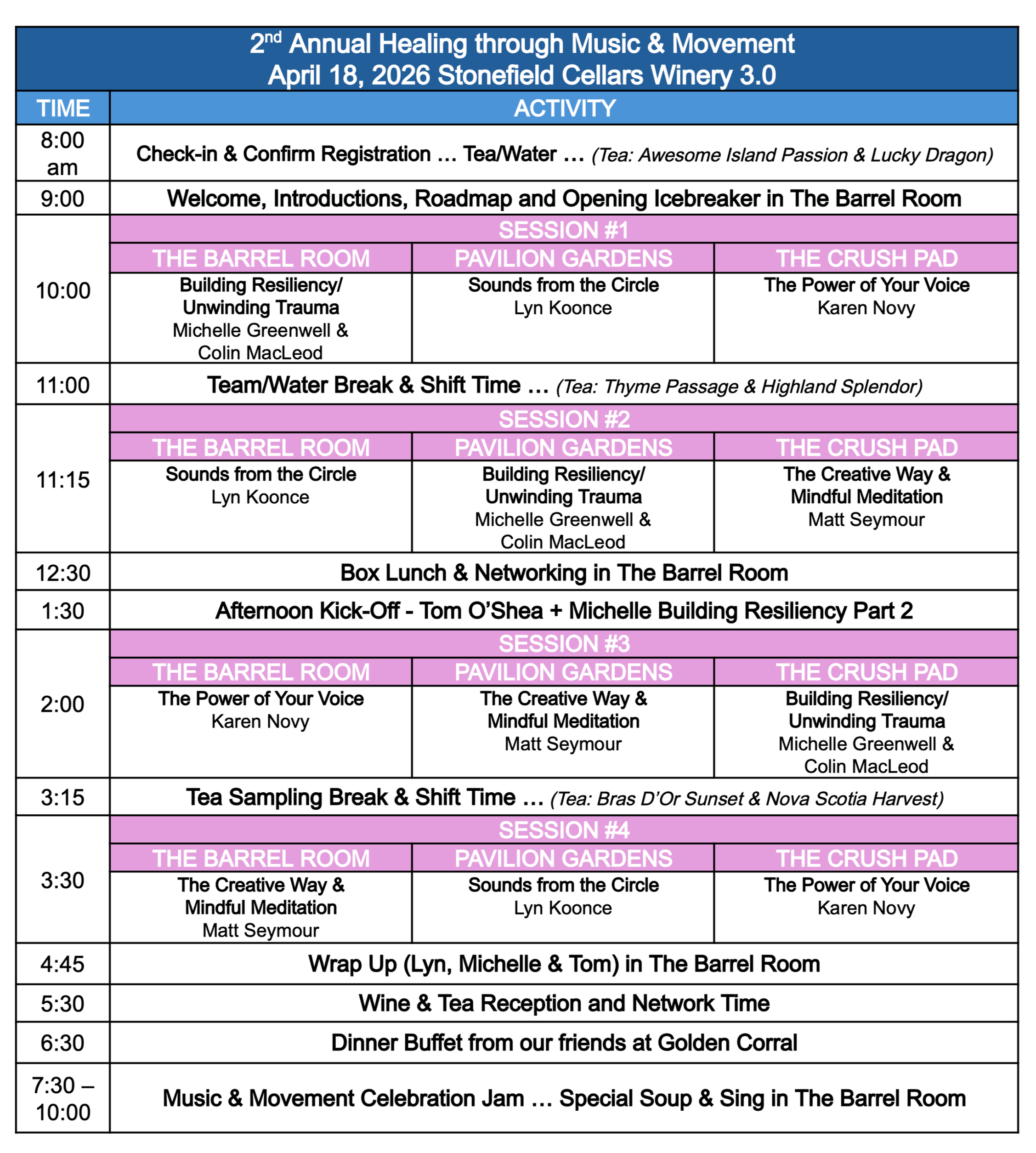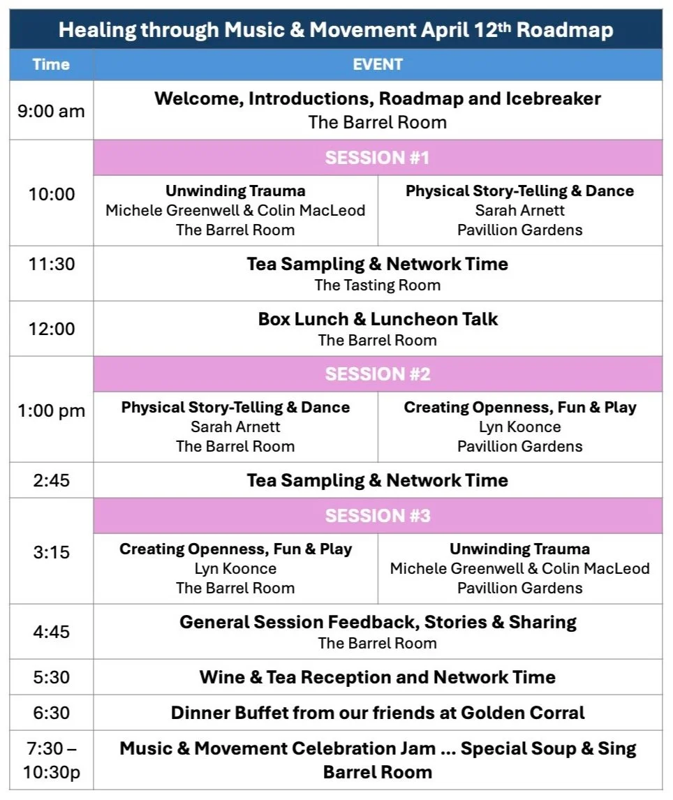 Marathon Jam™ proudly sponsors this world class event that explores the depth of our mission of “healing through music” by creating a supportive and trauma-informed experiential workshop for veterans, first responders, caregivers, seniors, and healthcare professionals, offering gentle yet powerful music, movement, and creative arts practices to foster healing and resilience.